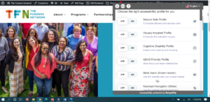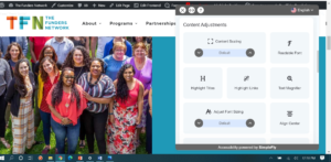 To see our accessibility application in action, click on the orange accessibility icon on the bottom right corner of The Funders Network website. (You’ll see this icon at the bottom right of your screen, regardless of where you are on our site.)