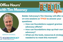 Exploring Regional Partnerships, Resilience Investments and more at TFN25’s Concurrent SessionsFebruary 18, 2025Read More How we’re meeting the moment at TFN’s 25th Anniversary Conference in BaltimoreFebruary 13, 2025Read More Maya Wiley, Civil Rights Attorney & Activist, Will Close Out TFN’s 25th Anniversary Conference in Baltimore!February 11, 2025Read More Mobility & Access Advocacy Spotlight: Nominate a stellar transportation grantee!February 7, 2025Read More Interactive Skill-Building Workshops at TFN25!February 7, 2025Read More Connect with Bolder Advocacy Senior Counsel Tim Mooney at TFN’s 25th Anniversary Conference in Baltimore!February 5, 2025Read More Introducing the PLACES Leadership Network!December 17, 2024Read More Registration Now Open! TFN’s 25th Anniversary Conference: Be Bold Together | March 16-17, 2025December 12, 2024Read More Show all Uncategorized Upcoming Events PLACES Going PLACES 2025 TFN Conference Uncategorized February 18, 2025Exploring Regional Partnerships, Resilience Investments and more at TFN25’s Concurrent Sessions Uncategorized February 13, 2025How we’re meeting the moment at TFN’s 25th Anniversary Conference in Baltimore Uncategorized February 11, 2025Maya Wiley, Civil Rights Attorney & Activist, Will Close Out TFN’s 25th Anniversary Conference in Baltimore! Uncategorized February 7, 2025Mobility & Access Advocacy Spotlight: Nominate a stellar transportation grantee! UncategorizedUpcoming Events2025 TFN Conference February 7, 2025Interactive Skill-Building Workshops at TFN25! Uncategorized February 5, 2025Connect with Bolder Advocacy Senior Counsel Tim Mooney at TFN’s 25th Anniversary Conference in Baltimore! UncategorizedPLACESGoing PLACES December 17, 2024Introducing the PLACES Leadership Network! Uncategorized December 12, 2024Registration Now Open! TFN’s 25th Anniversary Conference: Be Bold Together | March 16-17, 2025 Show all Uncategorized Upcoming Events PLACES Going PLACES 2025 TFN Conference Uncategorized February 18, 2025Exploring Regional Partnerships, Resilience Investments and more at TFN25’s Concurrent Sessions Uncategorized February 13, 2025How we’re meeting the moment at TFN’s 25th Anniversary Conference in Baltimore Uncategorized February 11, 2025Maya Wiley, Civil Rights Attorney & Activist, Will Close Out TFN’s 25th Anniversary Conference in Baltimore! Uncategorized February 7, 2025Mobility & Access Advocacy Spotlight: Nominate a stellar transportation grantee! UncategorizedUpcoming Events2025 TFN Conference February 7, 2025Interactive Skill-Building Workshops at TFN25! Uncategorized February 5, 2025Connect with Bolder Advocacy Senior Counsel Tim Mooney at TFN’s 25th Anniversary Conference in Baltimore! UncategorizedPLACESGoing PLACES December 17, 2024Introducing the PLACES Leadership Network! Uncategorized December 12, 2024Registration Now Open! TFN’s 25th Anniversary Conference: Be Bold Together | March 16-17, 2025 Show all Uncategorized Upcoming Events PLACES Going PLACES 2025 TFN Conference Uncategorized February 18, 2025Exploring Regional Partnerships, Resilience Investments and more at TFN25’s Concurrent Sessions Uncategorized February 13, 2025How we’re meeting the moment at TFN’s 25th Anniversary Conference in Baltimore Uncategorized February 11, 2025Maya Wiley, Civil Rights Attorney & Activist, Will Close Out TFN’s 25th Anniversary Conference in Baltimore! Uncategorized February 7, 2025Mobility & Access Advocacy Spotlight: Nominate a stellar transportation grantee! UncategorizedUpcoming Events2025 TFN Conference February 7, 2025Interactive Skill-Building Workshops at TFN25! Uncategorized February 5, 2025Connect with Bolder Advocacy Senior Counsel Tim Mooney at TFN’s 25th Anniversary Conference in Baltimore! UncategorizedPLACESGoing PLACES December 17, 2024Introducing the PLACES Leadership Network! Uncategorized December 12, 2024Registration Now Open! TFN’s 25th Anniversary Conference: Be Bold Together | March 16-17, 2025
