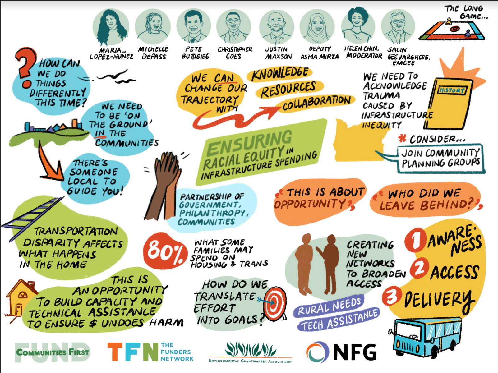 The event, Communities First: Ensuring Racial Equity in Infrastructure Spending, co-hosted by TFN in partnership with Communities First, Environmental Grantmakers Association, and Neighborhood Funders Group, focused on federal infrastructure, economic development and building generational wealth for BIPOC communities.