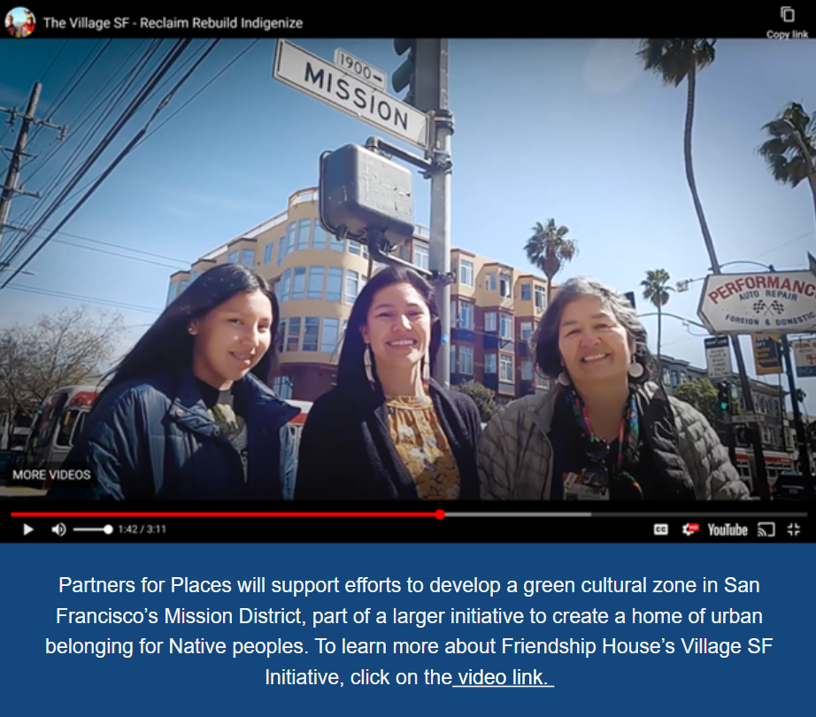 In San Francisco, Partners for Places will support efforts to develop a green cultural zone in the city’s Mission District, a plan that aims to transform more than a mile of sidewalks, streets, buildings and storefronts into a thriving, greened, biodiverse neighborhood community. The concept is part of a larger initiative to create a home of urban belonging in the heart of San Francisco where the city’s Native peoples can connect with services, with nature, with each other, and with their cultures.